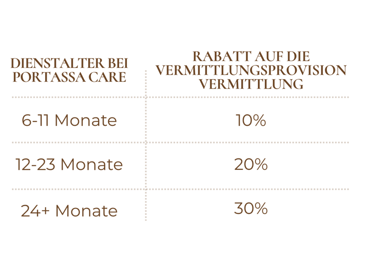 Wenn Sie Ihr Portassa Care-Abonnement kündigen, verlieren Sie die angesammelte Seniorität. Wenn Sie erneut beauftragen, beginnt der Senioritätszähler bei Null.